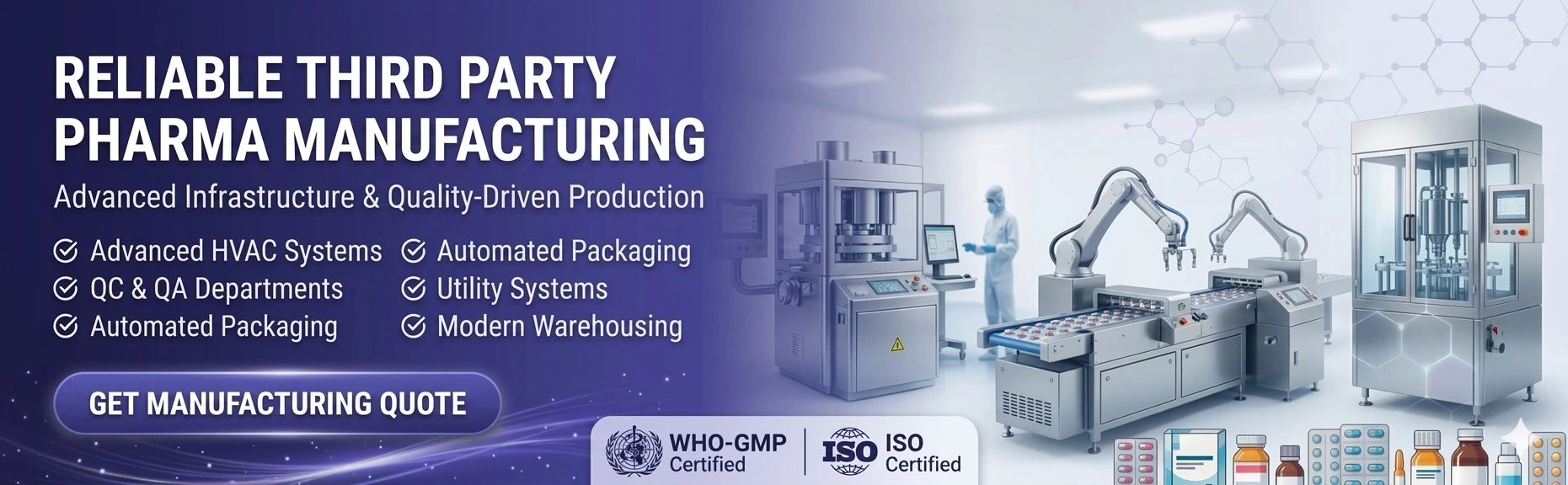 We combine advanced manufacturing technology with strict quality control to deliver medicines that meet global regulatory requirements. As a trusted third-party manufacturer in Ahmedabad, we partner with pharma companies across India and abroad to ensure reliable production and timely delivery.