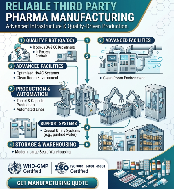 We combine advanced manufacturing technology with strict quality control to deliver medicines that meet global regulatory requirements. As a trusted third-party manufacturer in Ahmedabad, we partner with pharma companies across India and abroad to ensure reliable production and timely delivery.
